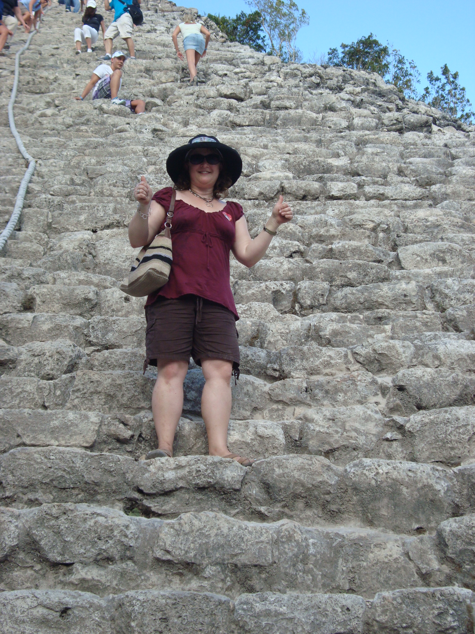 I didn’t kiss the ground when I got to the bottom, but I was VERY happy to be back! I don’t know that I would do it again, but I am proud to say that I did live to tell the tale of climbing the Nohoch Mal pyramid!!