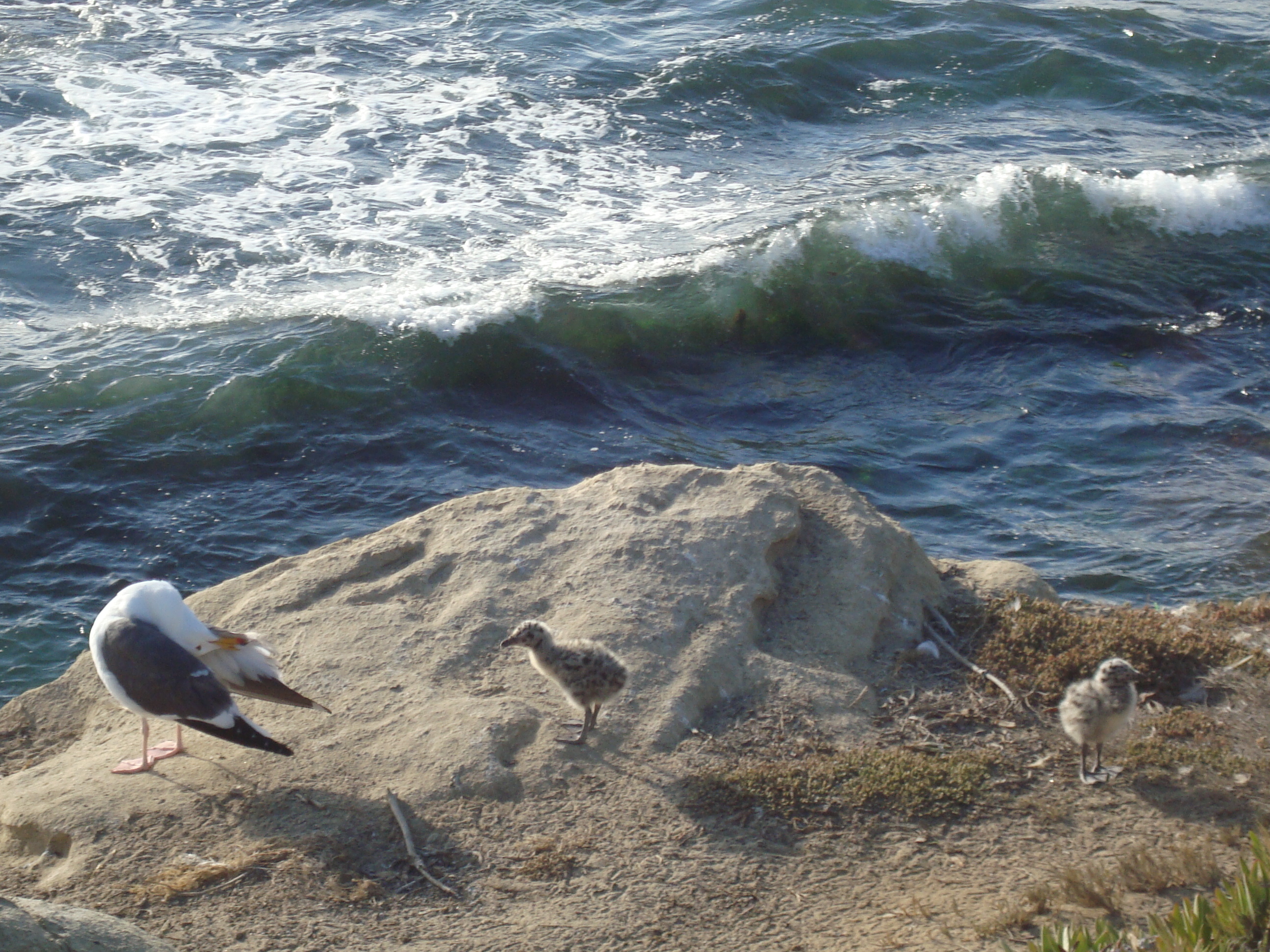 Apparently it’s true, even in nature, that mothers have eyes in the back of their heads, or at least manage somehow to always keep an eye on what the little ones are doing 😉 This mama seagull keeps a close watch on her babies 🙂