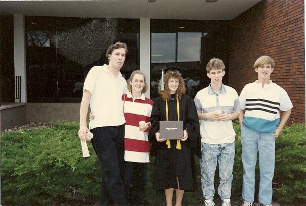 May, 1990 – My college graduation with my sister, two brothers and brother-in-law (WOW…..we sure were young way back then!! 😉 )
