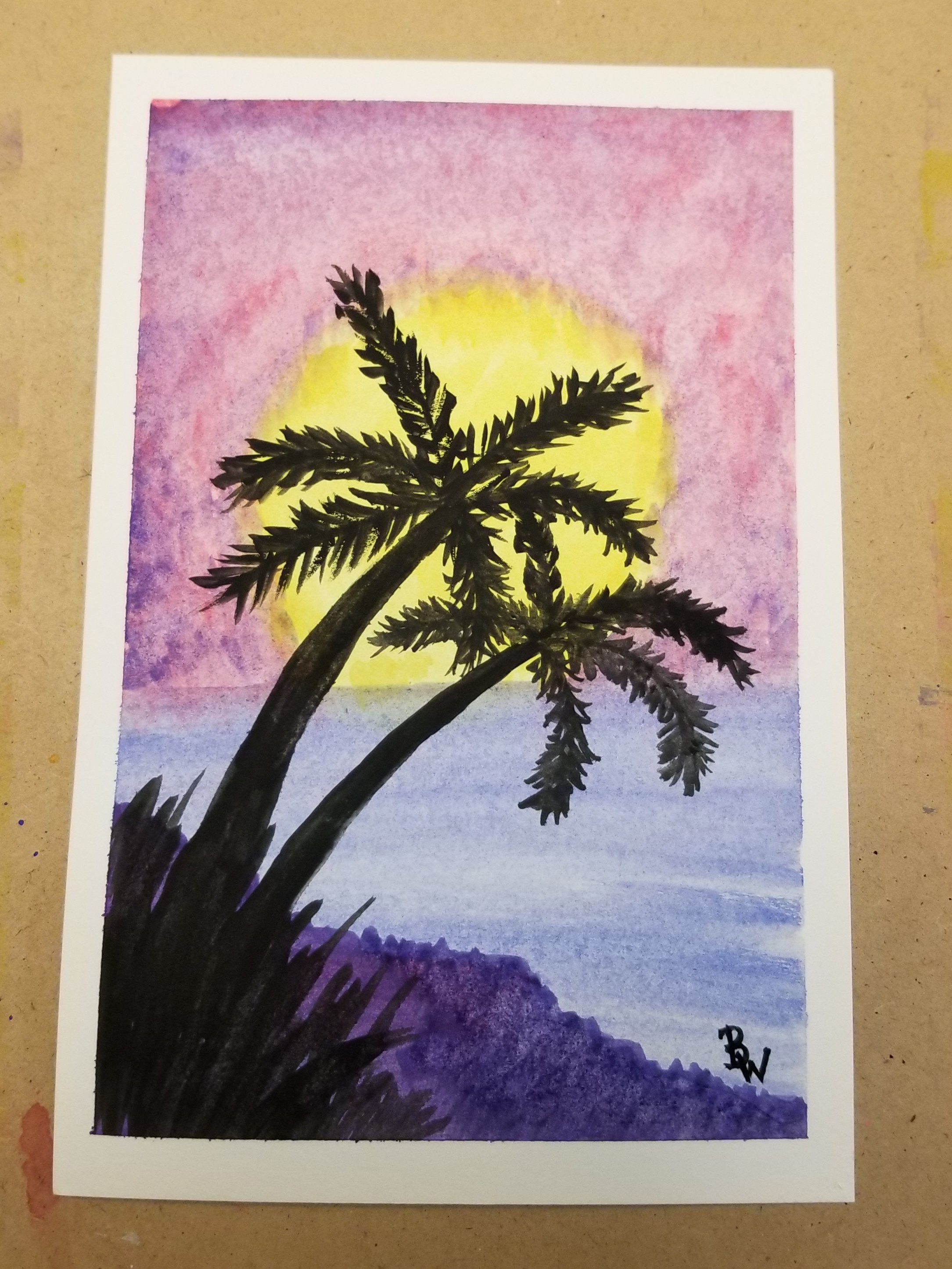 Ever feel like just getting away from it all? I feel like that at the moment! I am pleased with this practice painting, though! My first palm trees had leaves that all blurred together. I got a little better with this rendition.