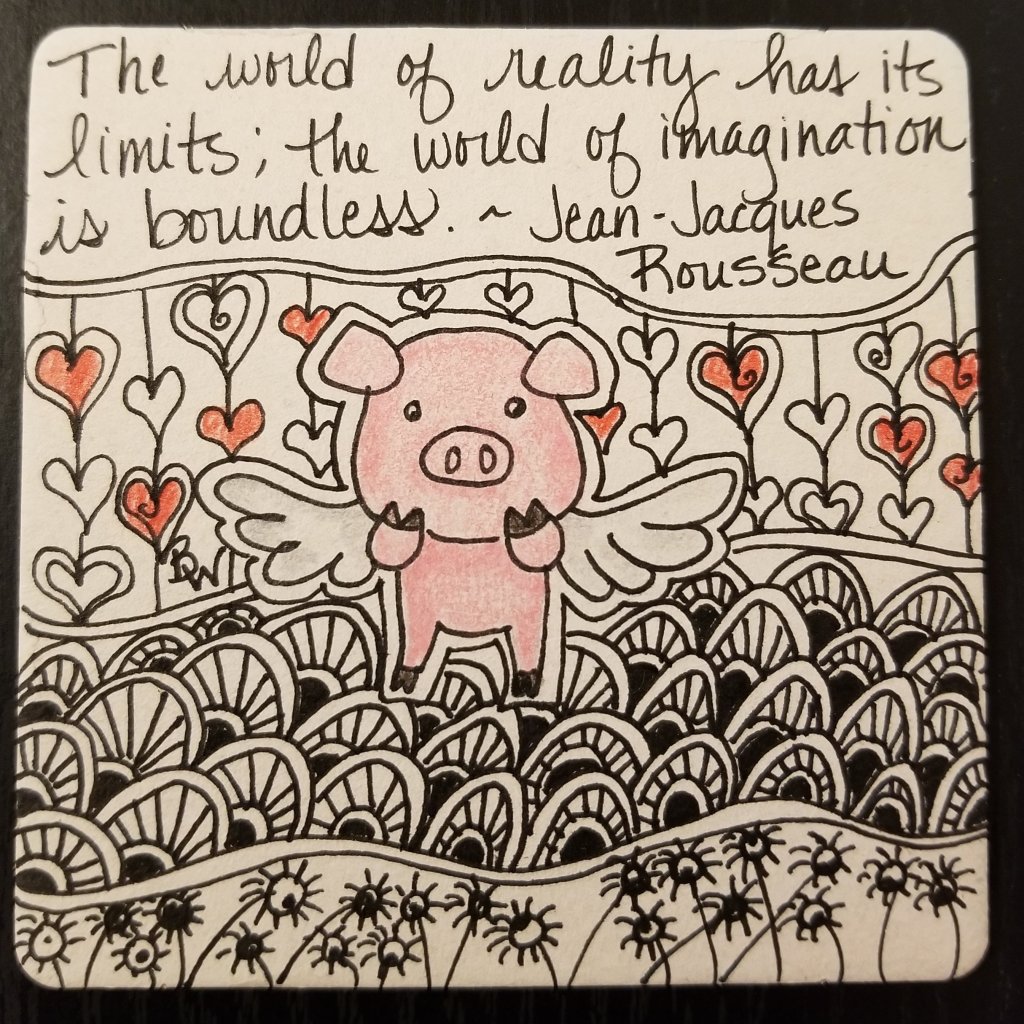 Back to the positive!! Can’t stay mired down too long. I have a fondness for pigs, so made this little guy. He is a cutie and since he has wings, I’m guessing he has a delightful imagination! Here are some great quotes I found about imagination! :