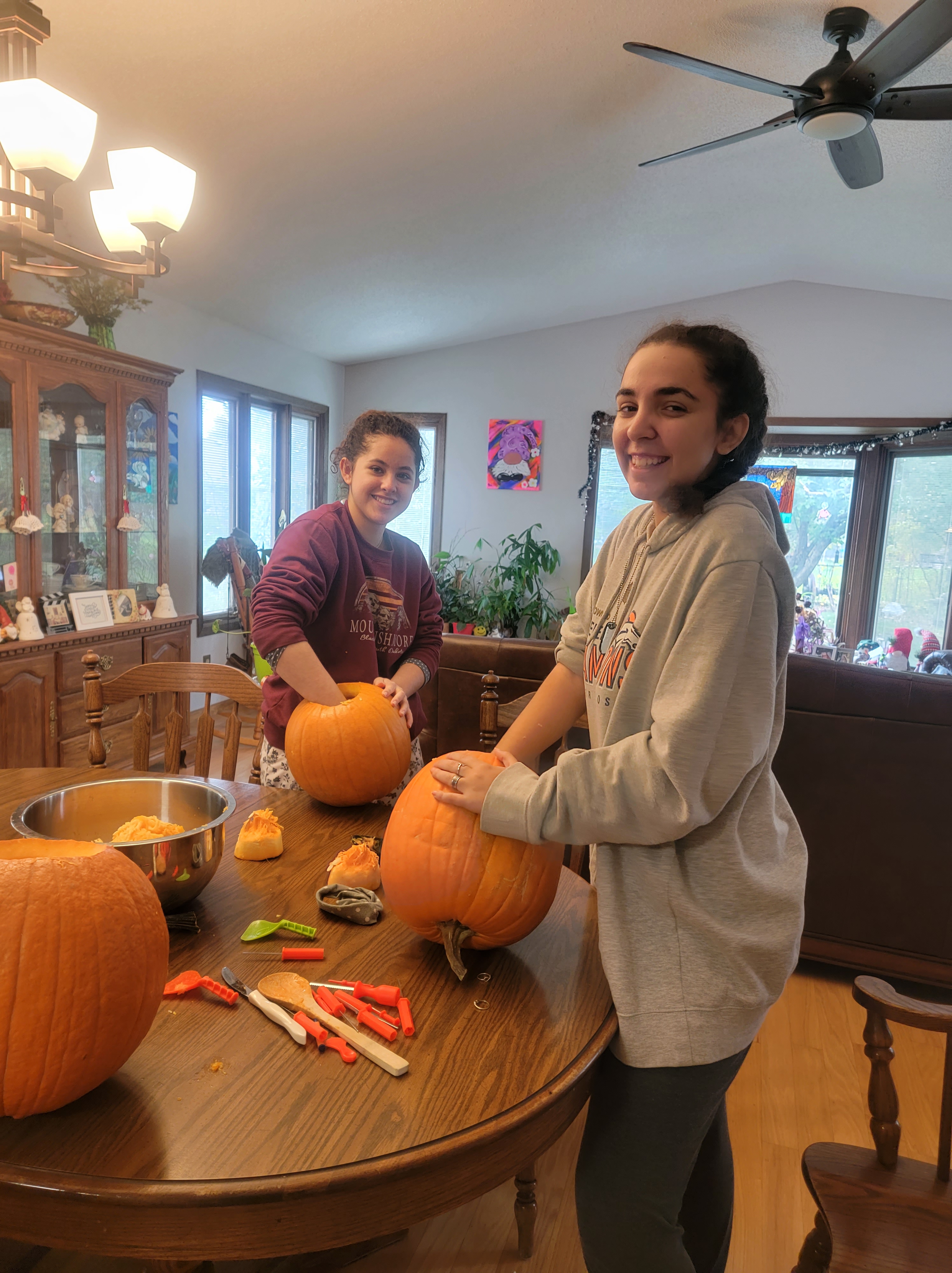 We spent part of the day hollowing out our pumpkins and carving jack-o-lanterns. 🎃 The girls did a fabulous job and I managed to carve one with the help of a template. Now our house is a bit more festive! Happy Halloween!👻 🎃 👻