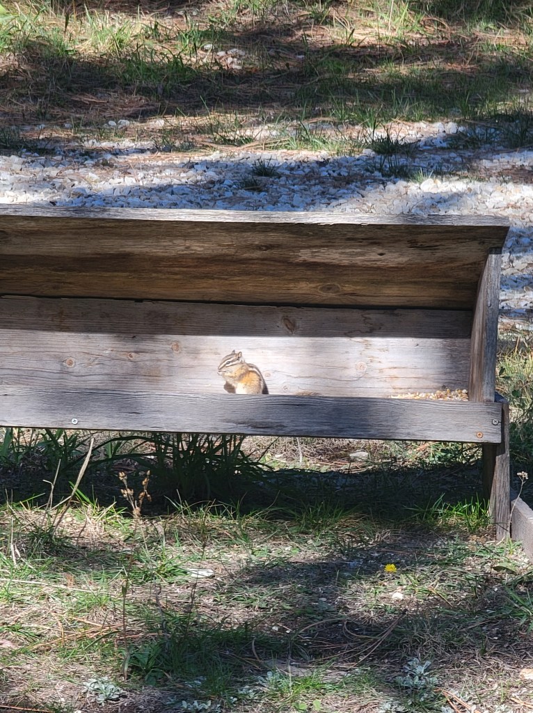 A bit later, I took some trail mix and scattered it in a few places so I could watch the cute chipmunks scurry about and find their treats. I managed to get a couple to sit still long enough for me to get a picture.