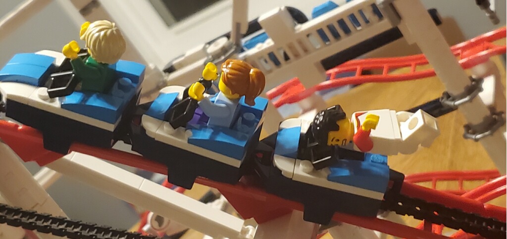My sweetie and I, with help from his son and daughter, built the Lego roller coaster pictured above. It was time consuming, but very rewarding when we finally got to watch it go around the tracks.