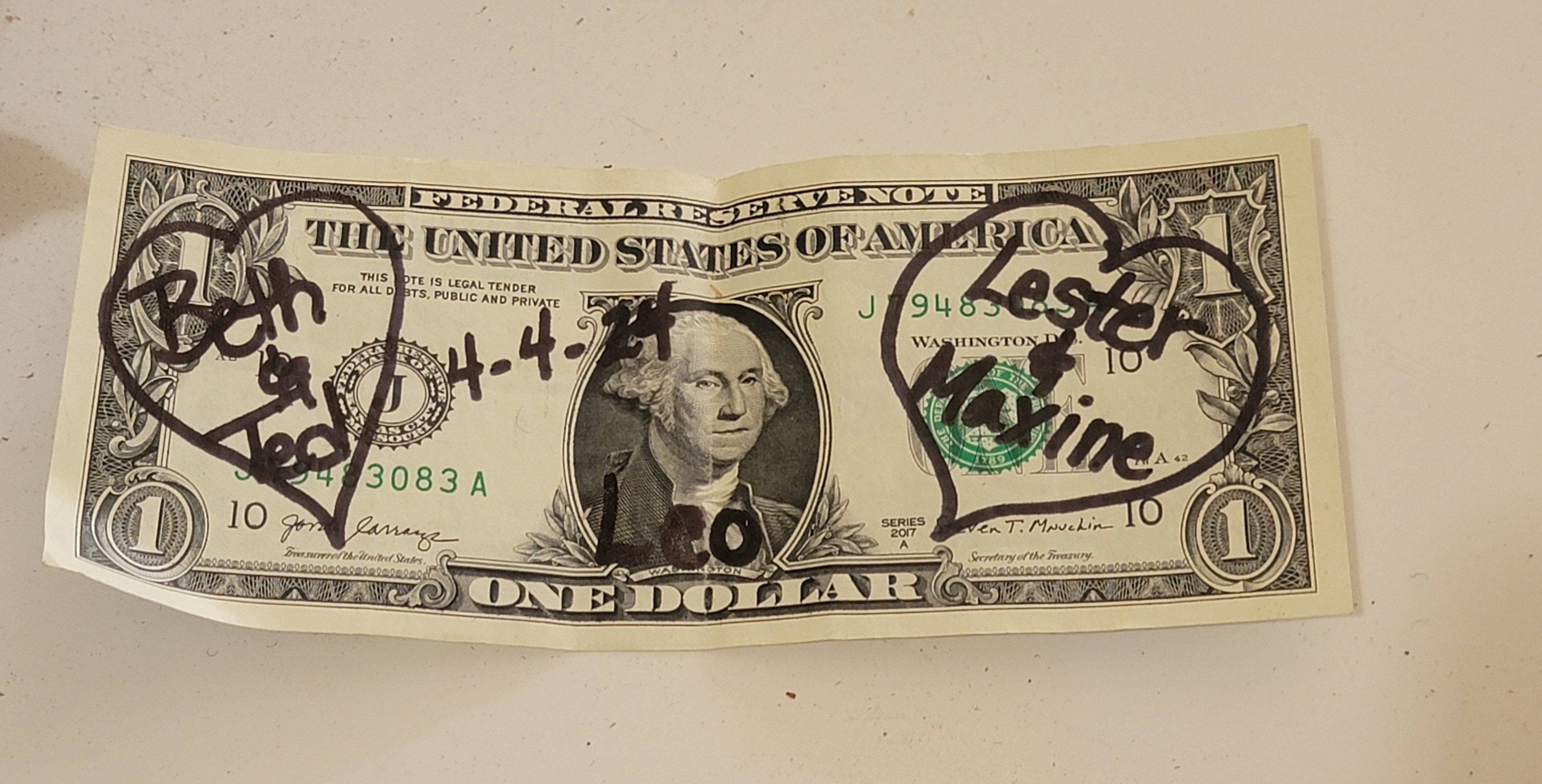We left our mark in Oatman, AZ with a dollar bill stapled to the wall.