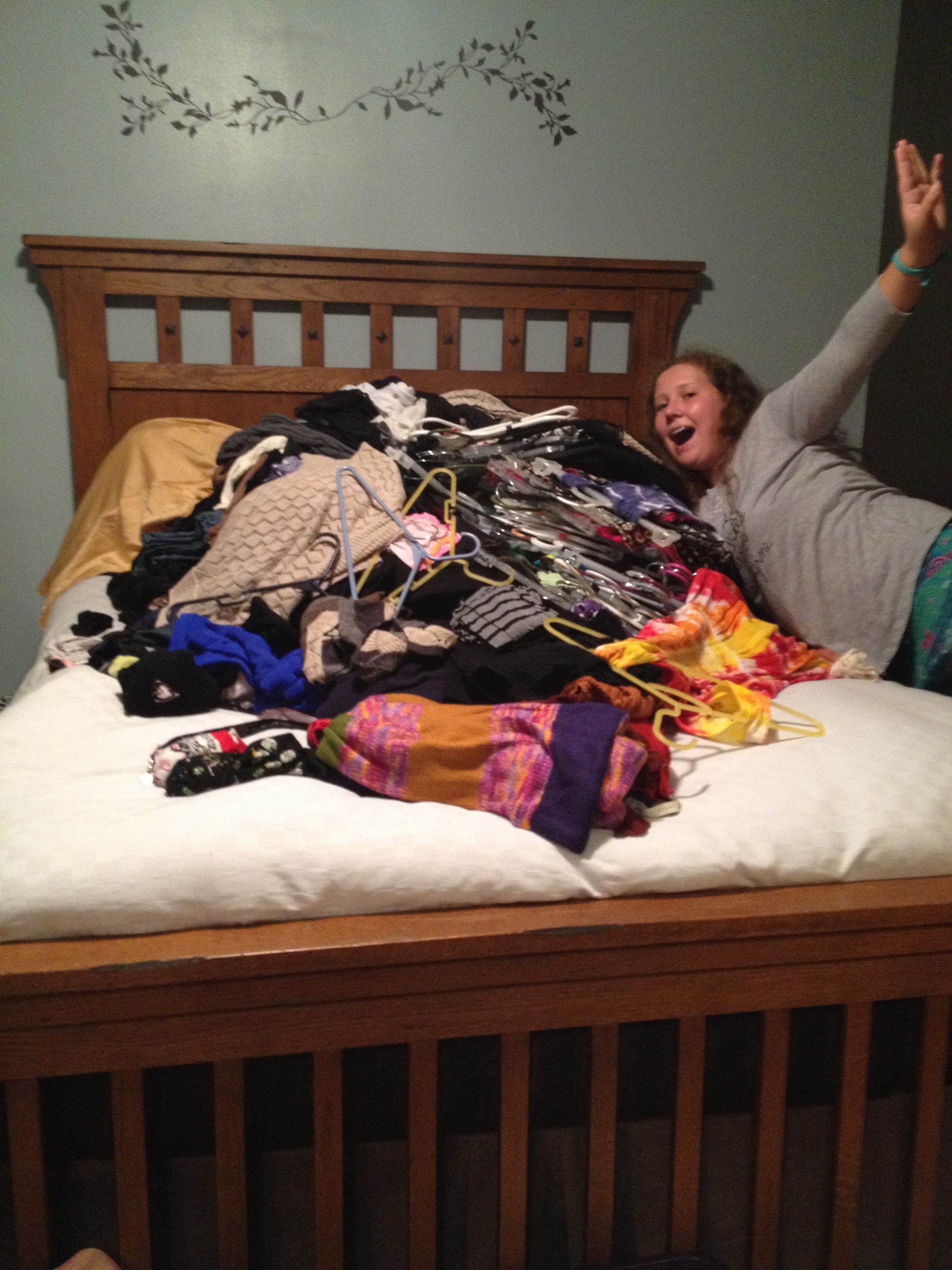 Scary, right???!!! I did as Kondo suggested and held every piece of clothing and as I did so, thought about whether it brought joy to me. Some items had at one point brought me joy, but hadn’t been worn in years; some I had purchased or had been given to me as gifts, but weren’t my style, didn’t fit comfortably and were inevitibly returned to the closet when I tried them on because they honestly did not make me happy with how I looked. They had made their way in and out of my closet, but had never been discarded because I felt as if I shouldn’t get rid of them since I had spent so much money on them or received them as gifts. She has wonderful words of wisdom about these items. They served their purpose and brought me joy when I bought or received them. In doing this, these items have done their job and can now be released to bring joy to someone else. It’s so much easier to let go of anything by looking at it this way. I turned up my tunes, and with a little help from my daughter, whittled down the massive mountain! I thanked the clothes for bringing joy to me and talked to them as I either hung them gently back in my closet, placed them lovingly in my dresser or folded them and placed them appreciatively in the bags that would go on to others who could use them.