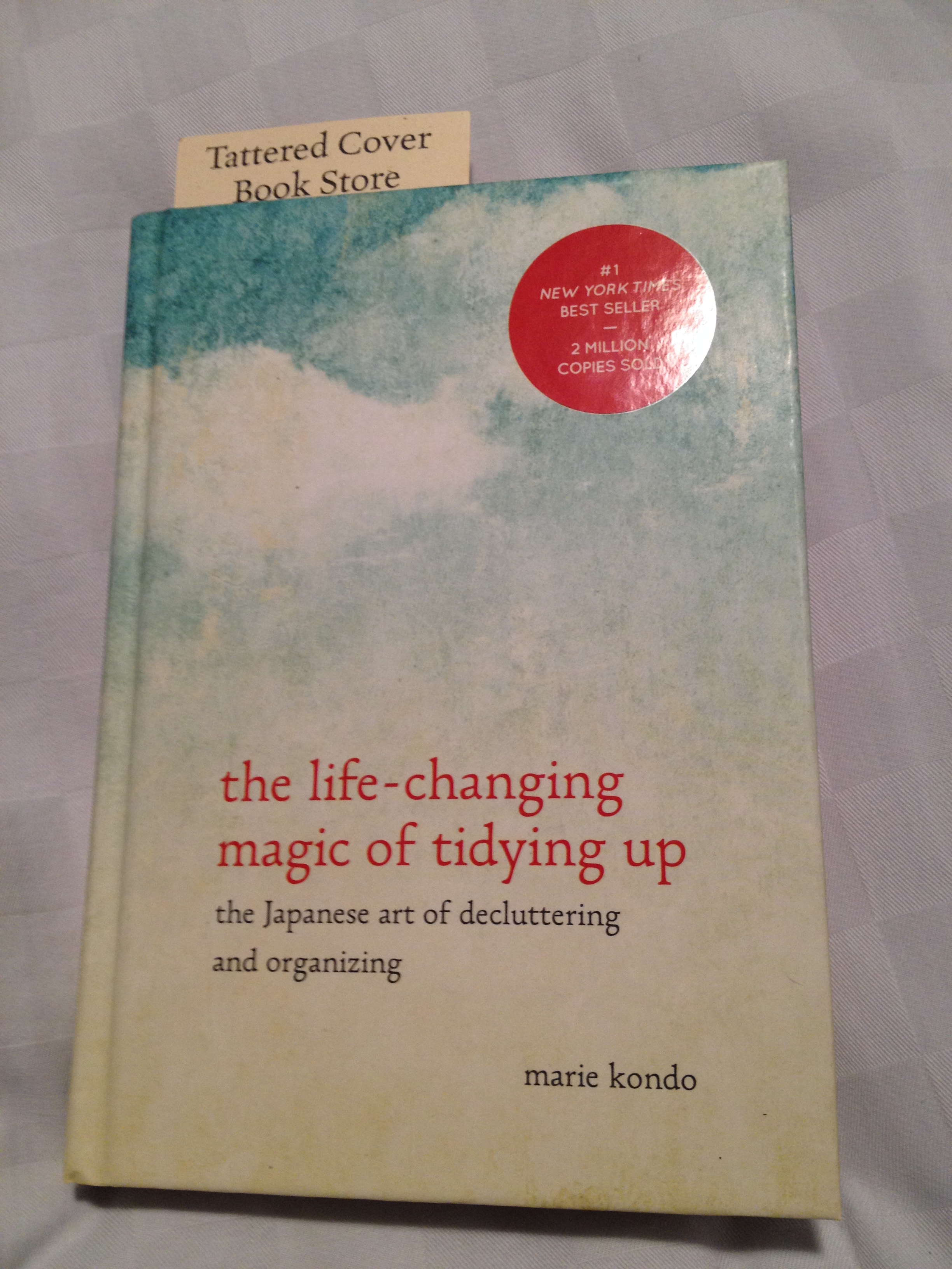 After reading countless reviews praising “the life-changing magic of tidying up, the Japanese art of decluttering and organizing” by Marie Kondo, I found my curiosity aroused to the point where I HAD to read this book. On our recent anniversary trip to Denver, my husband and I visited the Tattered Cover bookstore (AMAZING, by the way), and lo and behold, there was this magical book on the display stand with other books hand-picked by employees at the bookstore. It had a handwritten note underneath saying it was as good as the hype, so I took a leap and bought the book.