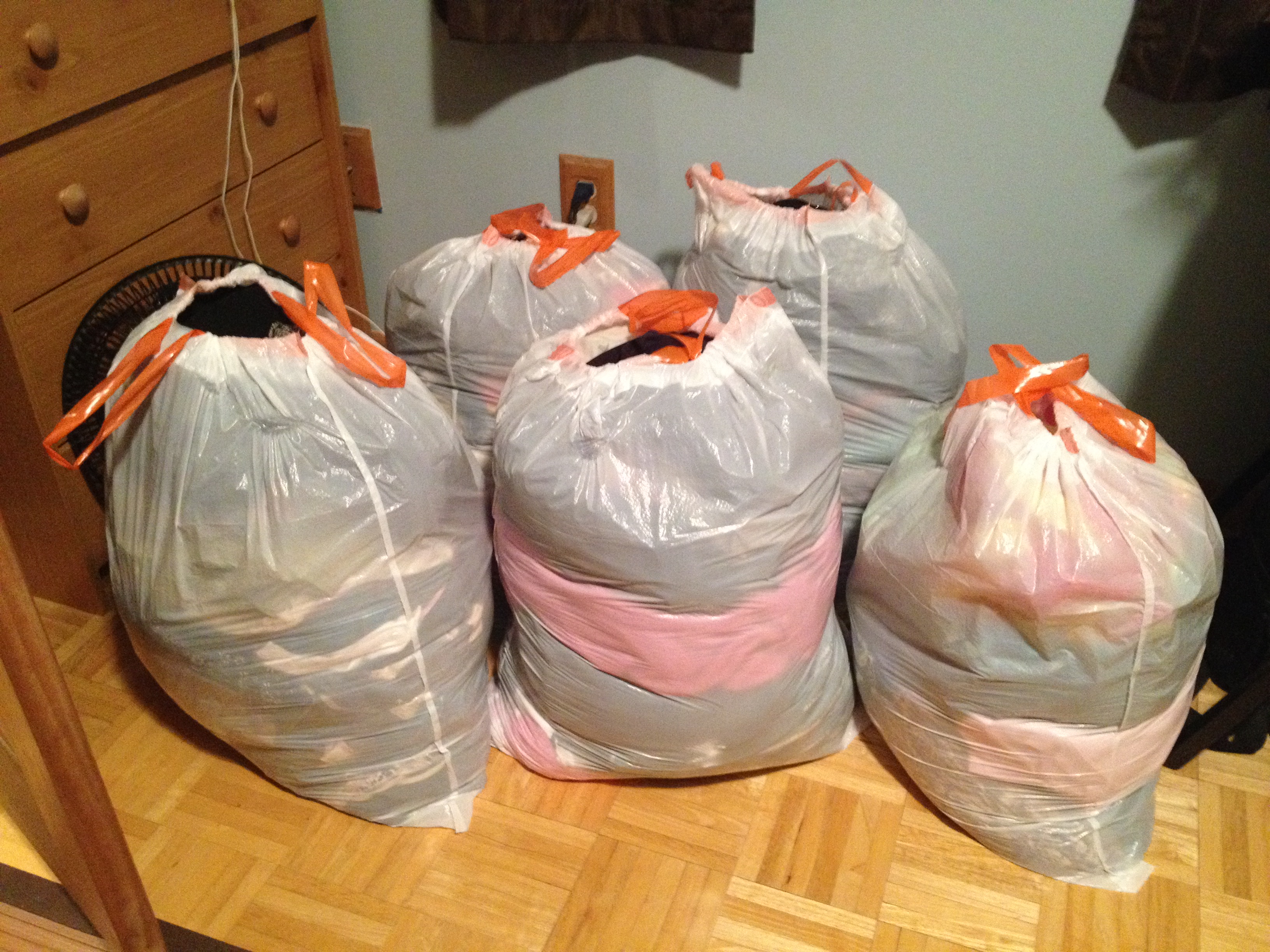 WOW! Five bags full of clothing ready to go on to new homes and bring joy to new people!