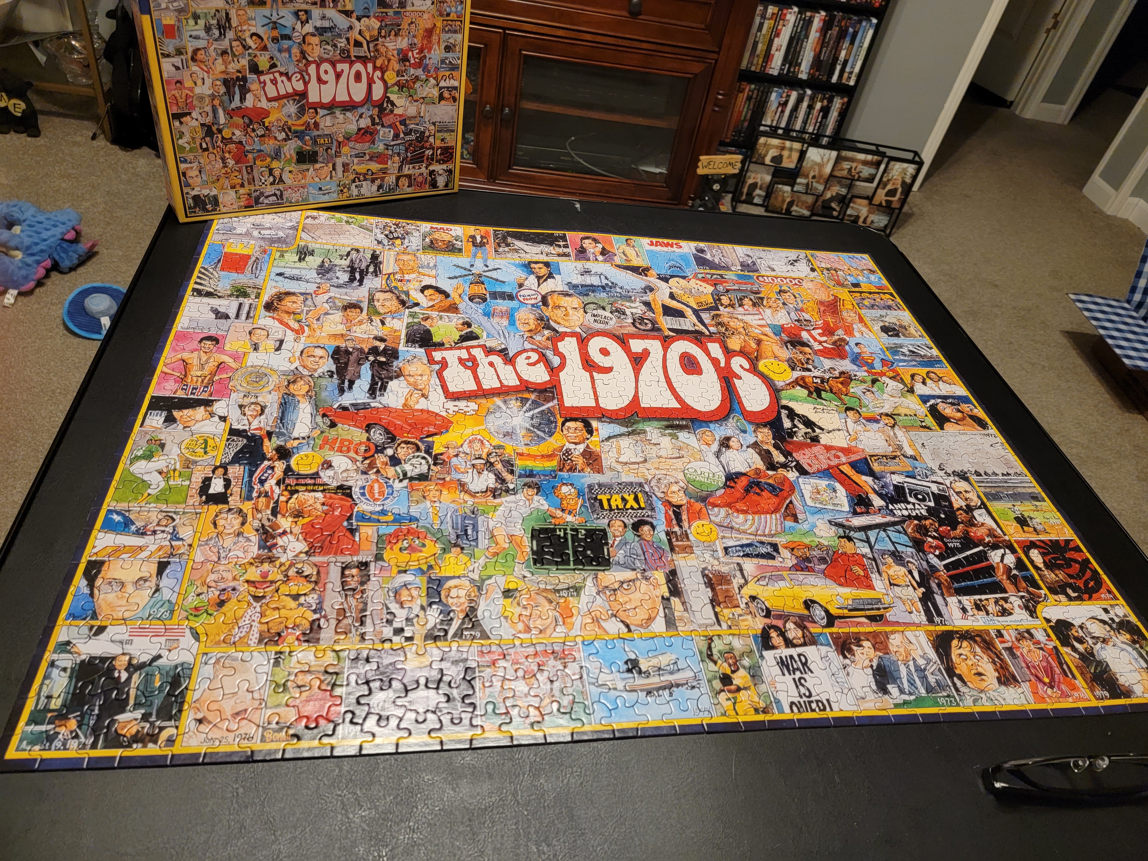 Sunday, we decided to totally forget about doing anything productive and started assembling a puzzle I gave Ted for Christmas. While Alexa played 70s tunes, we assembled a puzzle filled with people, items, and memorable moments from the 1970s. All in all, it was a weekend well spent! 😊